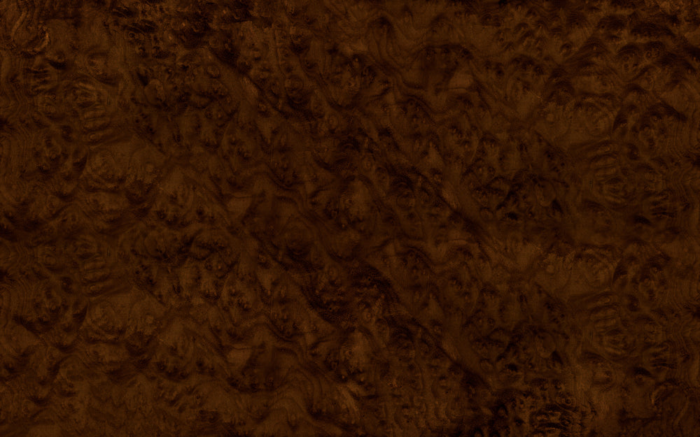 Ein warmer, dunkler Braunton, der die markanten Strukturen des Vogelaugenahorns hervorhebt.